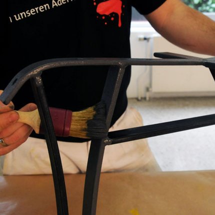 Auch die Metallteile sollten Sie zweimal mit ADLER VariColor E20 streichen. Aufgrund der Glimmerpartikel braucht es hier aber keinen Zwischenschliff.