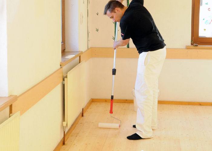 4. Schritt – Parkett versiegeln: Deckbeschichtung Floor Classic auftragen