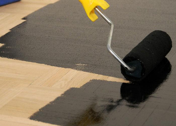 Anschließend tragen Sie ADLER Legno-Color auf den abgeschliffenen Parkettboden auf. Das Öl sollte zunächst gut angerührt werden, dann tragen Sie es mit einem Roller oder einer Streichbürste für Böden ebenmäßig und vorsichtig auf das Parkett auf. Fangen Sie in den Ecken an, das Parkett zu ölen und streichen Sie von dort aus zum Ausgang des Zimmers. Wenn Sie sich die gesamte Fläche in Teilstücke abgrenzen, die Sie einzeln bearbeiten, trocknet das Öl nicht zu schnell an.