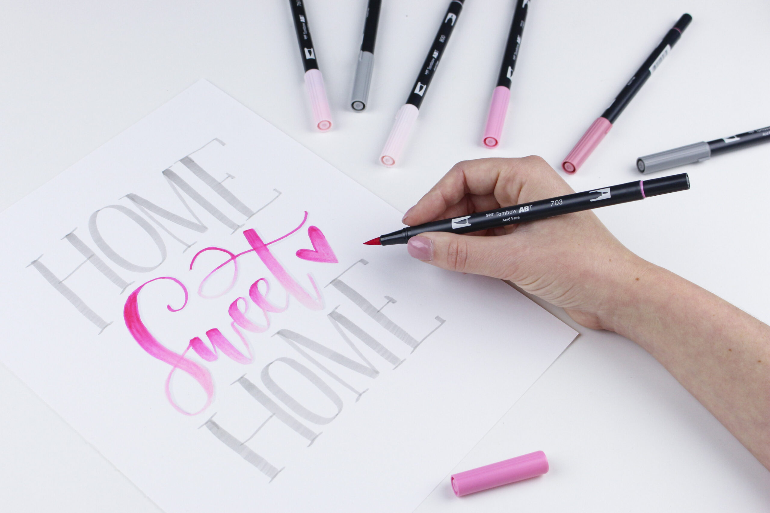 Tombow ABT Brush Pen mit zwei Spitzen. Er verfügt über eine feine Spitze für exakte Linienführung und einer breiten Pinselspitze für flächigen Farbauftrag. Der Tombow ABT Brush Pen ist auf Wasserbasis hergestellt. Die Farben können miteinander vermischt und aquarelliert werden.